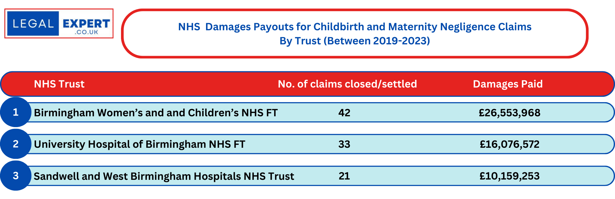 Childbirth and Maternity Negligence Claims at Birmingham NHS Trusts Statistics