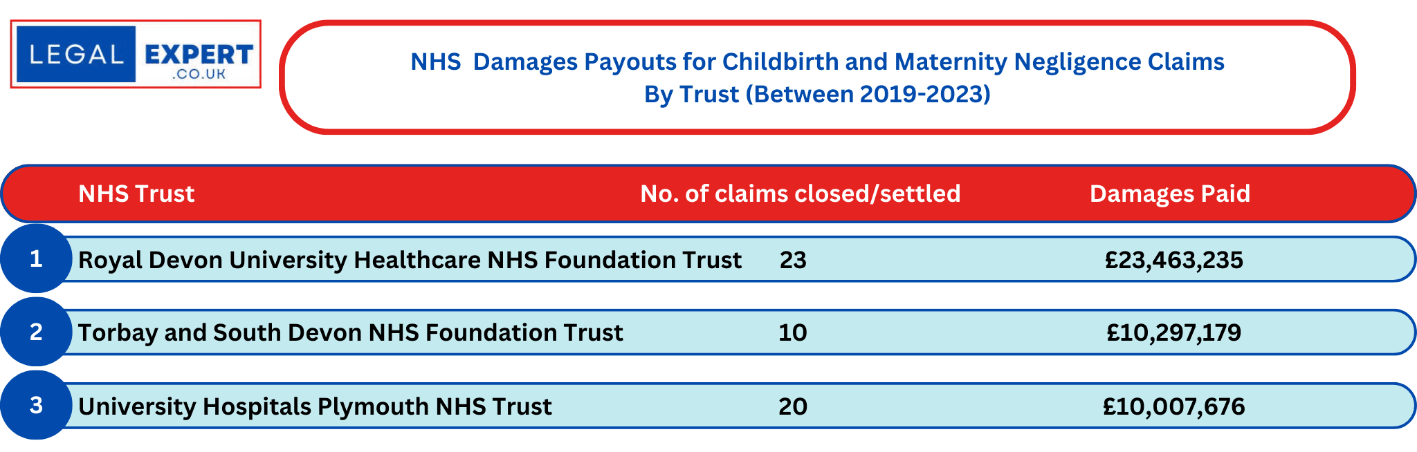 Childbirth and Maternity Negligence Claims at Devon NHS Trusts Statistics